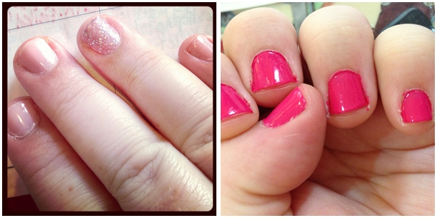 Speaking of boot camp, a quick update. I’ll never say it’s easy, ever. It’s just not. BUT I do feel better now when I do it, or rather after I do it. One problem has remained consistent… SHIN SPLINTS! Oh how I loathe them! My trainer watched my feet and how I walk and run and discovered the reason for the pain and stress on my shins was definitely my shoes. Pretty pink tennis shoes on sale = not the most supportive shoe. I decided to bite the bullet, sacrifice fashion, and go have my feet analyzed at a specialty store. I now have what I like to call my grandpa shoes. Big, bulky, grey and orange boy shoes! Today will be my first day to wear them. I have high hopes! At least I’ll always have cute nails to make up for the unfashionable boy shoes.