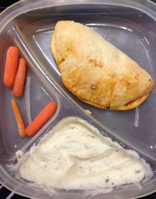 | leftovers – mostly consumed carrots + unsloppy sloppy joe + garlic mashed potatoes |