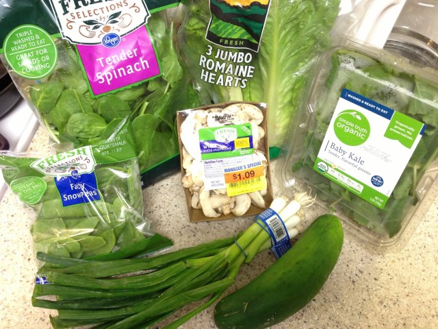 I’m trying to be super healthy this week to go along with finally starting to work out again. Confession: Today was my first time to work out since boot camp, which ended on March 21st. It felt good! So lots of green things on the menu.