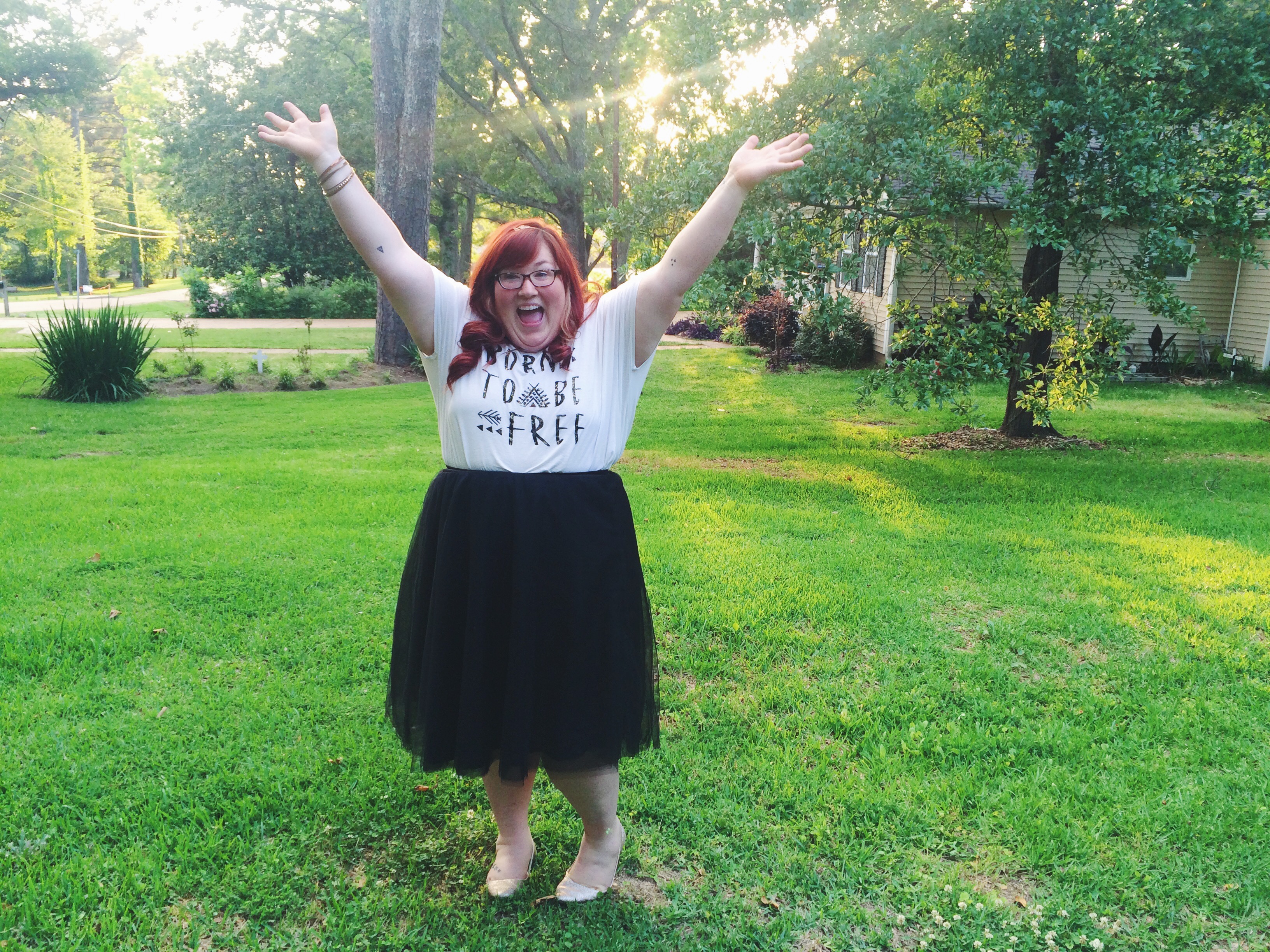 I strategically plan my outfits for extra fun days like birthdays. I debuted my new tulle skirts for the occasion! Black one + sparkly graphic tee, a gold headband (grownup equivalent of a tiara), and gold glitter flats. Birthday DAY ended with a late night premiere showing of PITCH PERFECT 2!