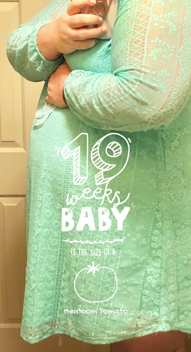 Other posts: Finding Out | Four Weeks | Five Weeks | Six Weeks | Seven Weeks | Eight Weeks | Nine Weeks | Ten Weeks | Eleven Weeks | Twelve Weeks | Thirteen Weeks | Fourteen Weeks | Fifteen Weeks | Sixteen Weeks | It’s a… | Seventeen Weeks | Eighteen Weeks | Nineteen Weeks | Twenty Weeks | Twenty-One Weeks | Twenty-Two Weeks | Twenty-Three Weeks | Twenty-Four Weeks | Twenty-Five Weeks | Maternity Woes | Twenty-Six Weeks